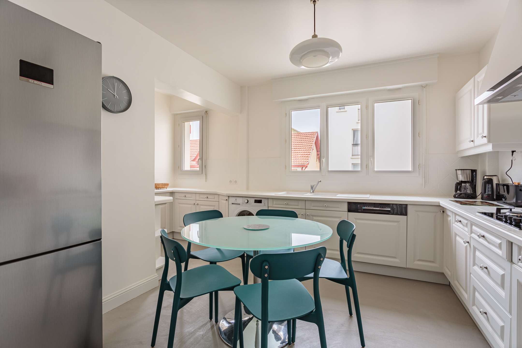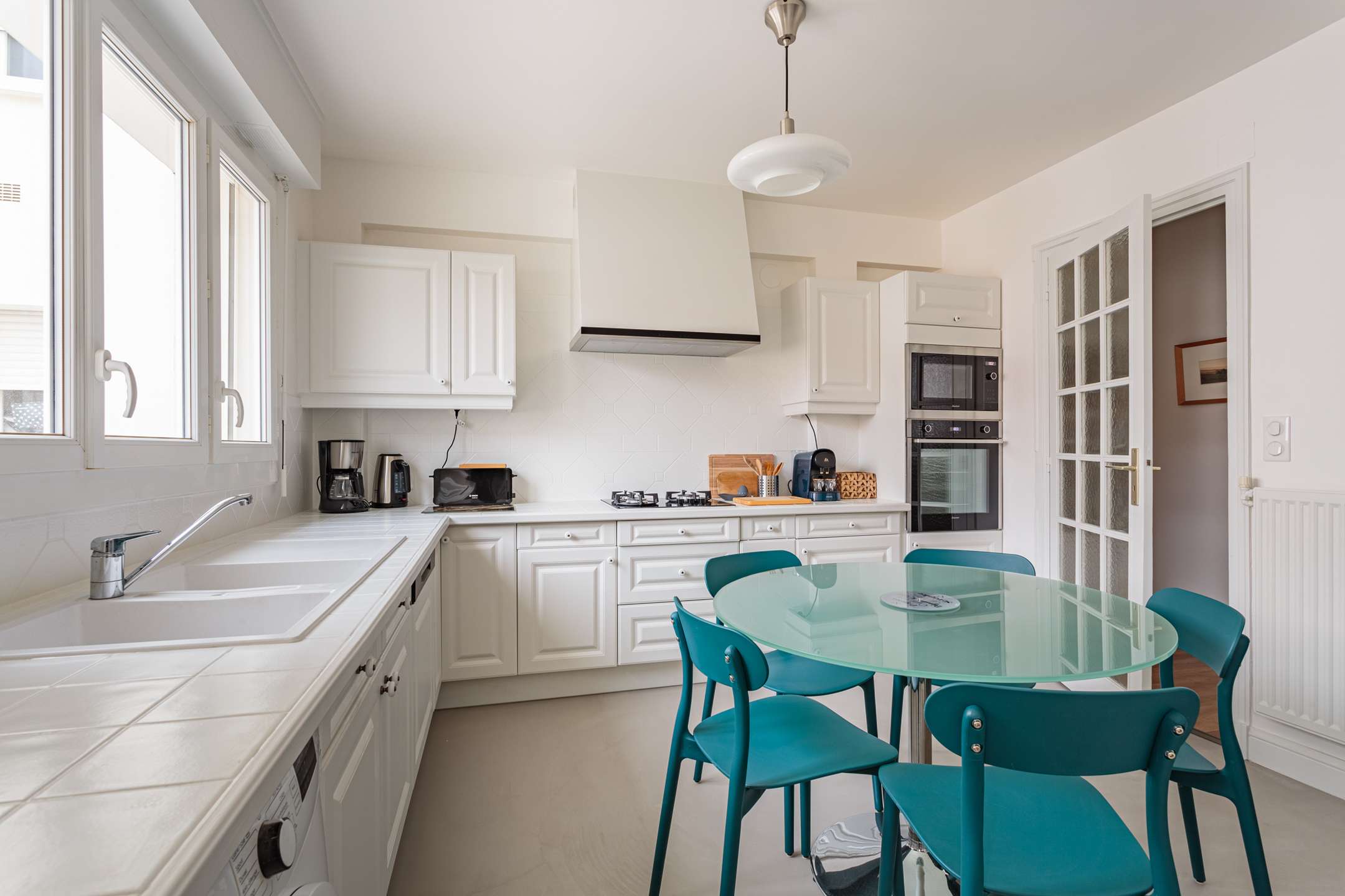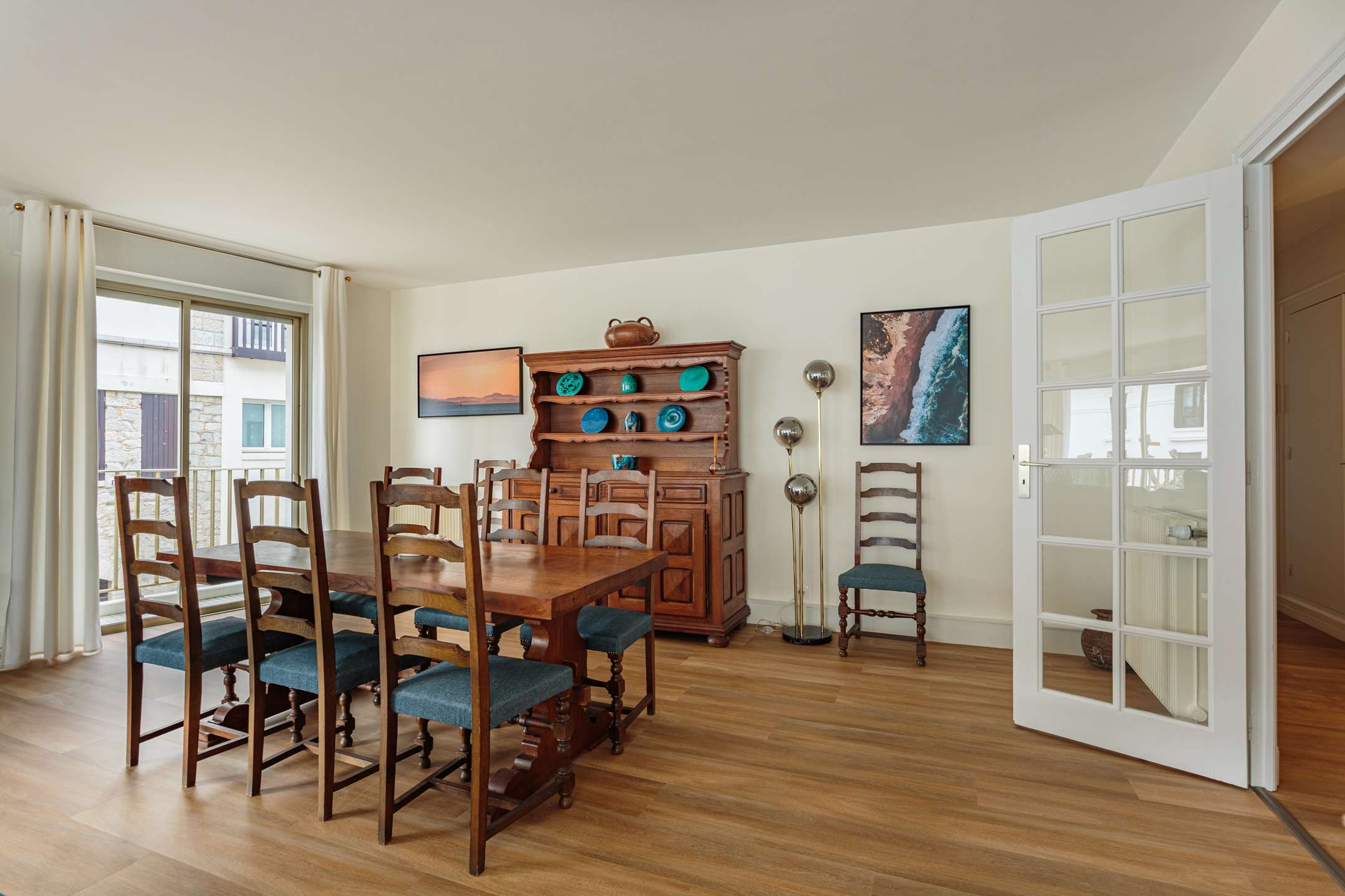 Beautiful apartment in the city center and 50 m from the large beach Very rare, apartment with quality services on the 2nd floor of a secure residence with lift, 2 steps from the beach and the thalassotherapy centre. This property with rare volumes consists of a large living room, dining room with neat decoration opening onto a revolving balcony offering a circular view of the boulevard Thiers, compulsory passage of the city to walk along the pier, reach the thalassotherapy or going to the beach. You will have a fully equipped closed kitchen with a dining area. The sleeping area consists of 3 bedrooms. Two bedrooms opening onto the revolving balcony with respectively a bathroom and a shower room. Another bedroom overlooking an interior courtyard with another bathroom. A parking space in the basement is at your disposal. Please note that the size and depth of this box are not suitable for all types of cars. You will appreciate the comfort, the facilities and the location of this accommodation which will allow you a stay on foot in the heart of the beach center of Saint Jean de luz.