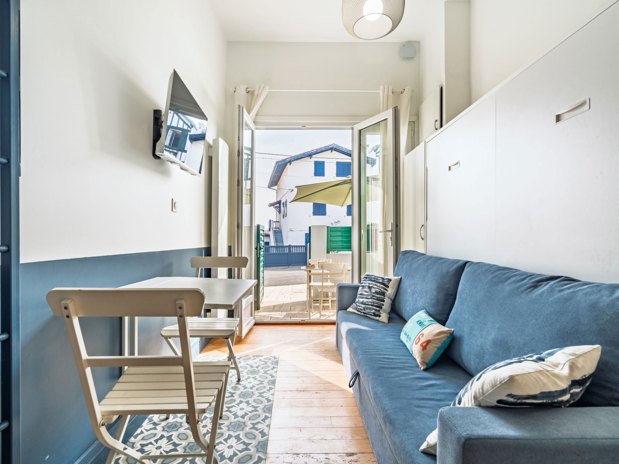 "Iduski ayzea", 1-room studio 17 m2, on the ground floor. Beautiful and modern furnishings: living/sleeping room with 1 fold-away bed (150 cm, length 200 cm). Small, open kitchen (2 ceramic glass hob hotplates, toaster, kettle, microwave, electric coffee machine). Shower/WC. Small terrace. Facilities: iron. Internet (WiFi). Parking. Please note: smoke alarm. Offer by a private individual according to Art. 155, IV of CGI. 6448300207374